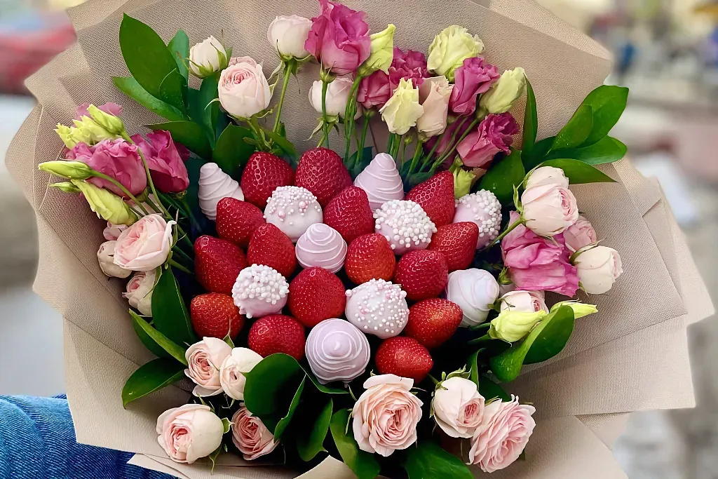 Заказывая букет с цветами и клубникой в шоколаде в FlowLove, Вы получаете: